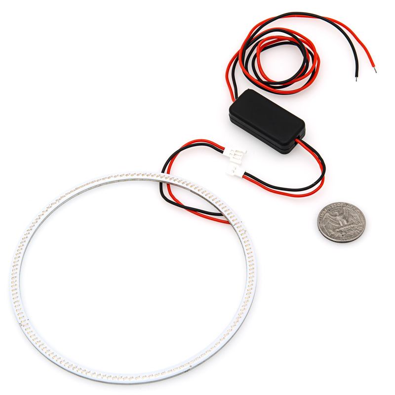The 80mm COB angel eyes have a nice white glow. Compare to the 60mm COB angel eyes I like better the color on the 60mm than the 80mm. The wire that is solder to the back of the board is pretty fragile. Avoid moving it around to much. Using a hot glue gun, I put a bit on top of the soldering point. Overall I like very much. If they could get the same color of the 60mm COB it will be perfect.