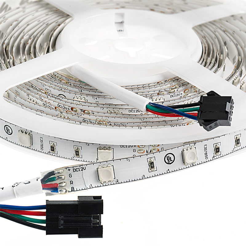 LED Strip Lights with RGB LEDs - LED Tape Light with 9 SMDs/ft and LC4 Connectors - 3 Chip RGB SMD LED 5050